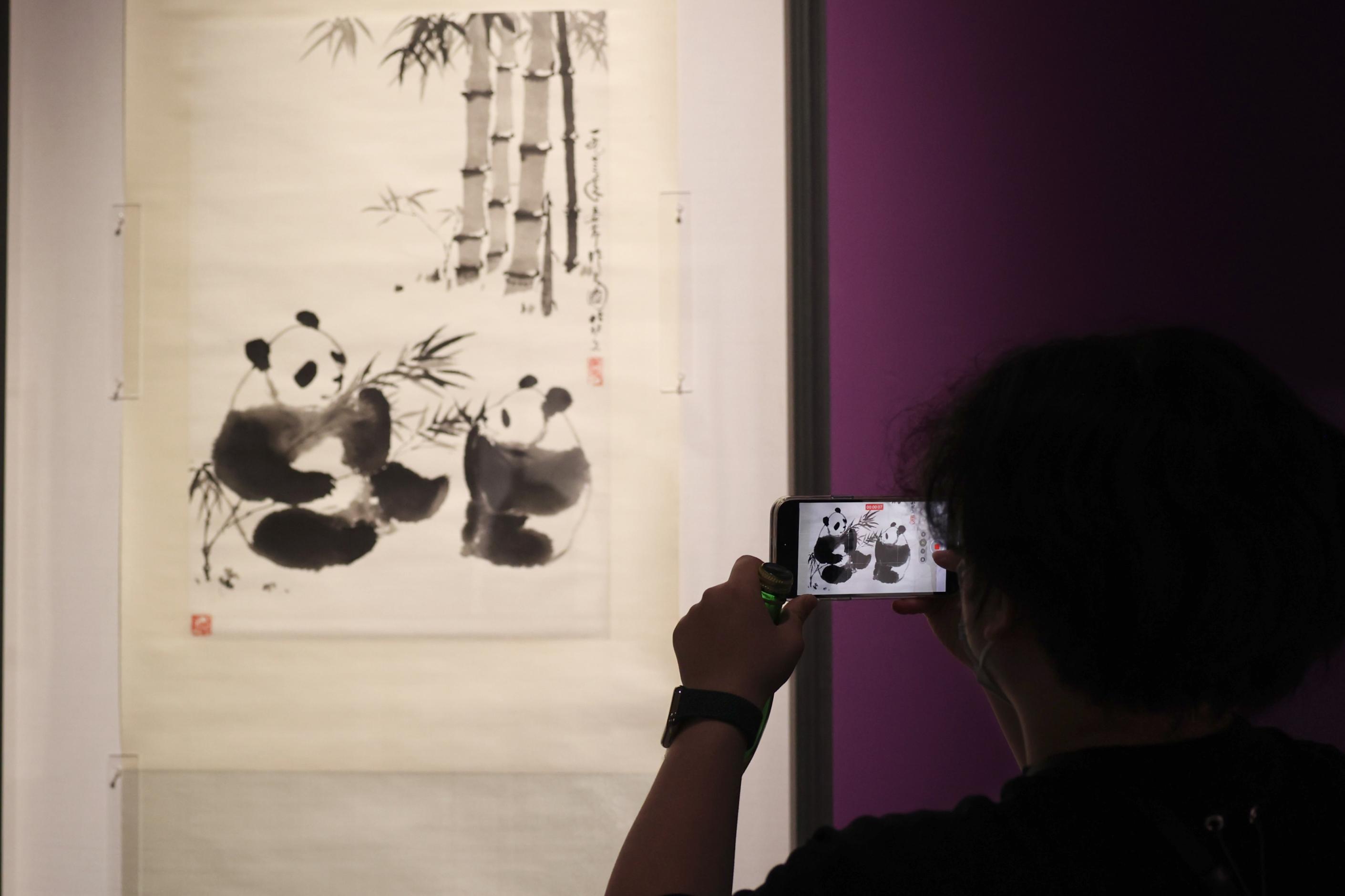 此次展覽匯集了中國國家圖書館、中國國家畫院、北京畫院、北京市文物交流中?、北京市徐悲鴻紀(jì)念館、湖南博物院、浙江省博物館、沈陽故宮博物院等幾十家機(jī)構(gòu)收藏的重要藏品,重點(diǎn)展出了齊白石《聚珍十開冊(cè)》《荔枝圖》,張大千《芳馨遠(yuǎn)聞》《吹簫仕女圖》,徐悲鴻《少陵詩意圖》、傅抱石《金城圖》、黃賓虹《吳淞記游圖》、潘天壽《墨龍》、李可染《清漓風(fēng)光》《無限風(fēng)光在險(xiǎn)峰》等眾多名家罕見真跡。這套“全明星陣容”難得一見,許多作品為首次公開展出。