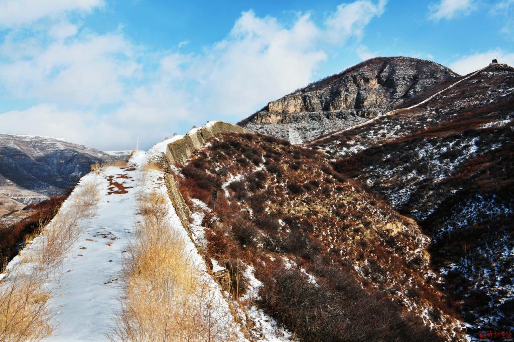 另一道長(zhǎng)城是這樣的:史書(shū)上記載的宋長(zhǎng)城出發(fā)地是草城川口天澗堡,實(shí)地中的草城川現(xiàn)在叫北川河,天澗堡古代可能有堡墻,如沒(méi)有,不可能有“川口有古城”的記載,可能歷經(jīng)千余年風(fēng)雨被河水沖刷掉了,現(xiàn)在堡墻已不太明顯但有古文化層遺跡,還有兩座規(guī)模較大的烽火臺(tái)。長(zhǎng)城從此出發(fā),向東爬上陡坡,順著一道山洼上到山頂。在山頂走了一公里余就與從興縣西來(lái)的北齊、隋修筑的早期長(zhǎng)城匯合,在陡峭的山頂上形成一個(gè)完美的“岢嵐結(jié)”,也就是俗話中的“二把叉”形狀。這段宋代獨(dú)立修筑的長(zhǎng)城大約有3公里。