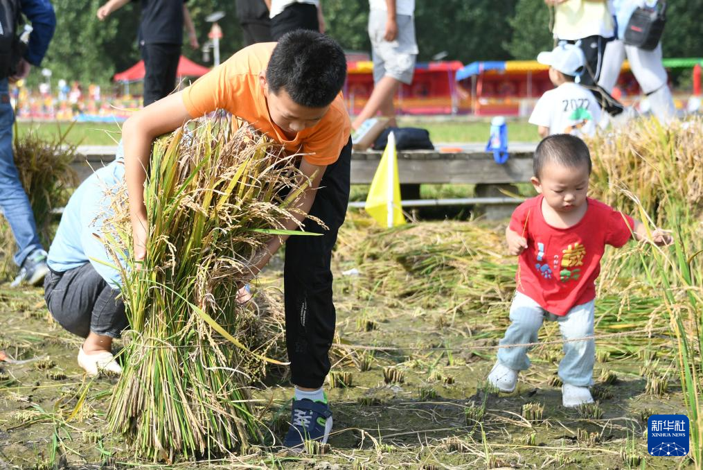 9月23日,我國迎來第6個(gè)中國農(nóng)民豐收節(jié)。北京市海淀區(qū)上莊鎮(zhèn)在西馬坊京西稻田舉辦首屆“稻香傳韻 非遺承情”文化藝術(shù)節(jié)活動。市民在活動中品美食、賞稻田風(fēng)光、參與割稻子比賽等趣味項(xiàng)目,樂享秋日美好時(shí)光。(新華社記者 任超 攝)