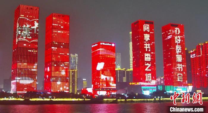 長(zhǎng)沙湘江兩岸同步上演的岳麓書(shū)會(huì)主題燈光秀。主辦方供圖