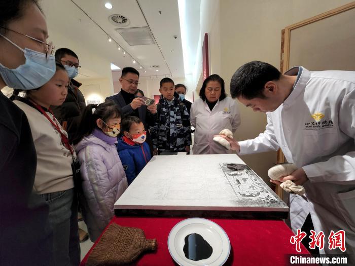 現(xiàn)場展示傳拓技藝,吸引觀眾圍觀欣賞。趙曉 攝