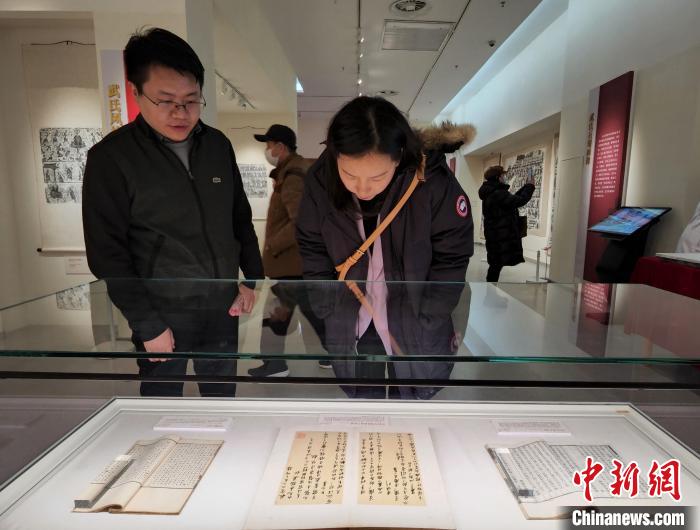 現(xiàn)場展出一批武氏風(fēng)格畫像拓片。趙曉 攝