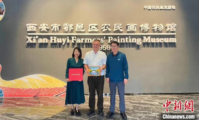 2023年8月,德國(guó)游客參觀西安市鄠邑區(qū)農(nóng)民畫(huà)博物館。(受訪者供圖)