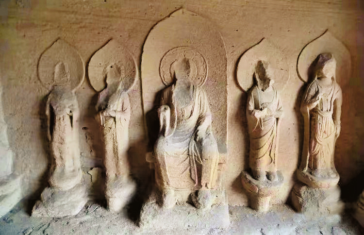 靜居寺石窟位于靜樂(lè)縣豐潤(rùn)鎮(zhèn)豐潤(rùn)村南500米寧白公路東側(cè)半山崖間,現(xiàn)存9窟,分布面積430平方米。據(jù)3至6窟間的摩崖碑記載,鑿于唐儀鳳二年(公元677年)。石窟均坐東朝西。1至6窟平面呈長(zhǎng)方形,平頂,四壁平直,高1.5米至1.8米,寬2米至2.5米,深1.5米至2.5米。火焰龕門(mén),長(zhǎng)方形,高1.1米至1.5米,寬1米至1.4米。門(mén)兩側(cè)設(shè)方形石柱或八棱束蓮柱,門(mén)楣內(nèi)雕飛天或花卉??邇?nèi)均設(shè)低壇,三壁均設(shè)石造像。7至9窟呈長(zhǎng)方形,拱券頂。3至6窟外壁存摩崖碑3通,均螭首,碑文漫漶不清??唔斏喜看嬗锌唛艽?。窟西側(cè)存明萬(wàn)歷二十二年(公元1594年)及清嘉慶十五年(公元1810年)重修碑各1通。1986年5月公布為省級(jí)重點(diǎn)文物保護(hù)單位。2019年10月7日公布為全國(guó)重點(diǎn)文物保護(hù)單位。
