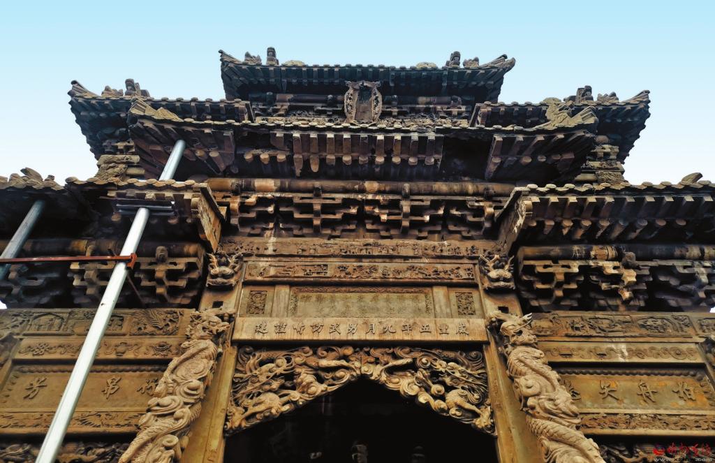 主坊位于原平市大牛店鎮(zhèn)陽武村,據(jù)記載,始建于清咸豐五年(公元1855年),坐東朝西,四柱三樓,重檐歇山頂,通高10.54米,通面寬15米,建于高0.94米的束腰須彌座上,束腰部雕有各種人物故事圖,正面雕有四個力士。額枋下四柱為方形霸王柱,前后有戧柱支撐。戧柱上有螭首纏繞。明樓略寬,兩次樓稍窄。明樓雀替上鏤雕有二龍戲珠圖,上置額枋及樓匾,分別署“咸豐五年九月男武訪疇謹(jǐn)建”“旌表資政大夫庠生武烈之妻朱氏節(jié)孝坊”。兩次樓雀替上鏤雕丹鳳朝陽,額枋上分別署“柏舟矢志”“竹帛流芳”,上下枋均雕有二十四孝圖、人物故事及花鳥走獸等圖案。下層檐仿木構(gòu)石雕斗拱,五踩重翹,上層檐仿木構(gòu)石雕斗拱,三踩單翹。坊前設(shè)有石雕、旗桿各一對。配坊坐北朝南,四柱三門,單檐歇山頂。牌樓石刻神獸、人物、楹聯(lián)。1982年維修。1965年公布為省級文物保護(hù)單位。2019年入選全國第八批國家級保護(hù)單位。