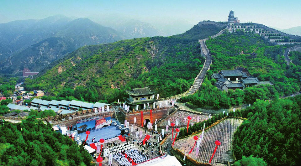 夏日的雁門關(guān)山花爛漫,翠林如海,行車穿梭在蜿蜒曲折的山路上,遠(yuǎn)遠(yuǎn)地就能望見雄踞在崇山峻嶺之間的雁門關(guān)關(guān)樓,連同兩側(cè)屹立對峙的山峰,如同雄鷹展翼,蔚為壯觀。