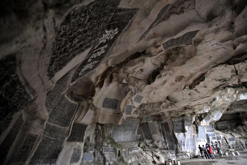 位于桂林市龍隱巖內(nèi)的桂海碑林,現(xiàn)存有唐代至民國(guó)摩崖石刻210余件,并收藏和陳列有桂林歷代石刻精品拓片及歷代散碑、石雕。新華社記者 陸波岸 攝