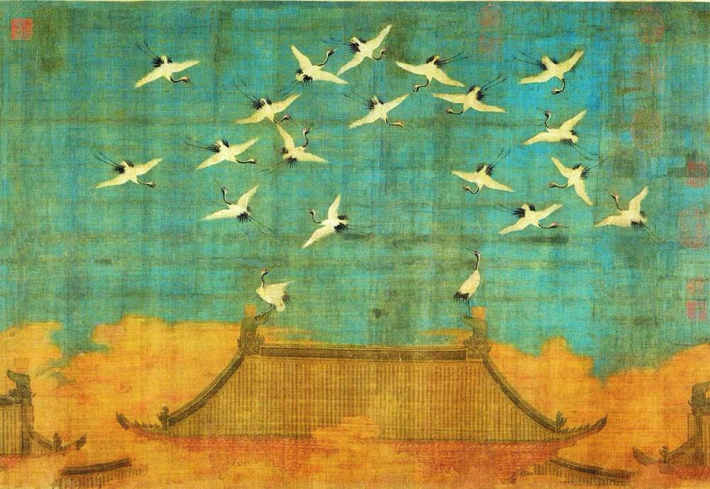 北宋政和二年(1112年)上元節(jié)次夕,天清氣朗,群鶴飛鳴,盤旋于宮殿上空,久久不肯離去。這讓宋徽宗趙佶產(chǎn)生了“仙鶴告瑞”的聯(lián)想,故欣然命筆,將目睹的這一幕繪于絹素之上,一幅千古名作《瑞鶴圖》就此誕生。在題畫詩中,趙佶以瘦金體記述了事件原委。他在詩中將群鶴與古籍中提及的祥鸞、赤雁相提并論,還特意強(qiáng)調(diào)了鶴與長生不老的關(guān)聯(lián),將它們與蓬萊仙山聯(lián)系在一起,指出其壽命能夠長達(dá)千年。雖然趙佶的祥瑞之愿難免落空,但鶴確實(shí)是一種長壽的動(dòng)物。人工飼養(yǎng)的丹頂鶴能活到七十多歲,這相對(duì)于古人的平均壽命,實(shí)在是很可觀了。