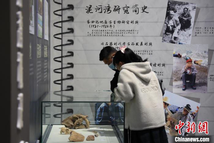 3月12日,正在國家自然博物館臨展一廳展出的“閃耀東方——泥河灣百萬年人類印記”展覽吸引游客觀看。記者 田雨昊 攝