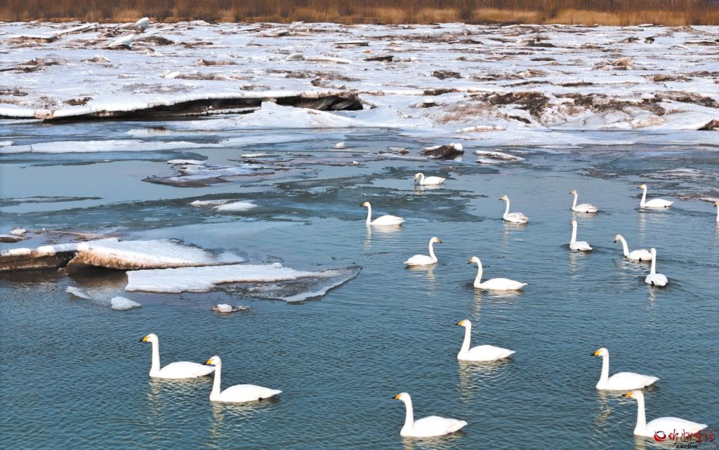 黑鸛、白鷺、天鵝、綠頭鴨等大批候鳥在此駐足。它們時而在冰面或淺灘上佇立,時而在河水中游弋,時而展翅高飛,鳴叫聲回蕩在河畔。這些候鳥的到來,不僅增添了朱家川河的生物多樣性,也成了生態(tài)恢復(fù)成效的生動寫照,成為攝影愛好者的最佳取景區(qū)。