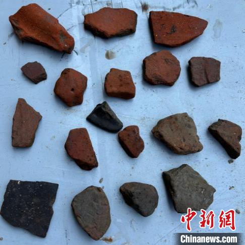 普查隊員對該文化遺存進行了詳細(xì)調(diào)查,發(fā)現(xiàn)該遺址分布范圍呈不規(guī)則弧形,面積約8300平方米。遺址區(qū)現(xiàn)為土豆、油菜等農(nóng)耕地,現(xiàn)場采集的陶片以夾砂紅陶片、夾砂紅陶塊為主,少量夾砂灰陶,其中包含夾砂紅陶器物口沿殘片2件、夾砂灰陶器物口沿殘片1件,未見彩陶、石器、骨器等。根據(jù)遺址所處地理環(huán)境和出土遺存分析,該遺址可能為一處新石器時代聚落遺址。