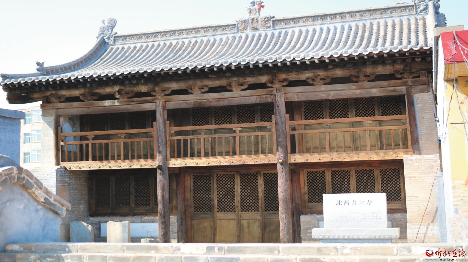 北西力大寺位于定襄縣晉昌鎮(zhèn)北西力村中,坐北朝南,東西長(zhǎng)11.1米、南北寬8.4米,占地面積約93平方米。據(jù)梁架題記記載為明萬(wàn)歷四十三年(1615)所建。該寺沿中軸線原建有山門(mén)、過(guò)廳、正殿,兩側(cè)建有東西配房?,F(xiàn)僅存正殿,為二層樓閣式結(jié)構(gòu),面寬三間,進(jìn)深四椽,前設(shè)廊,單檐懸山頂,五檁架結(jié)構(gòu)。二層廊前兩側(cè)有人物壁畫(huà)約4平方米。2015年8月25日公布為市級(jí)文物保護(hù)單位。