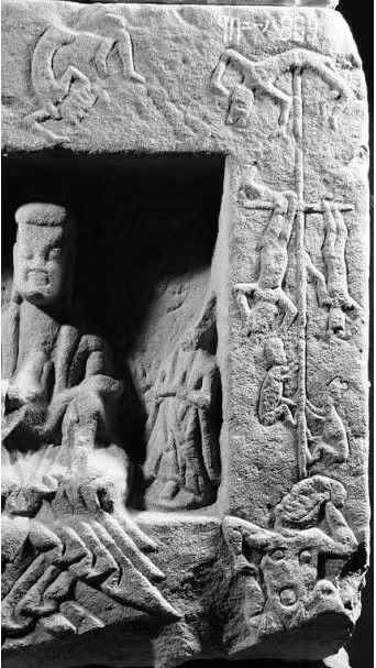 代縣峨口撓閣作為我省歷史悠久的民間藝術,自漢代形成以來,千年不變的六種表演套路具有強烈的胡漢民族雜居地域性特征。2008年,峨口撓閣入選國家非物質(zhì)文化遺產(chǎn)名錄。而云岡石窟作為世界文化遺產(chǎn),是具有東西方文明融合的歷史豐碑。 兩大世界遺產(chǎn)之間似乎風馬牛不相及,如果不是我們的先祖吳忠偉老先生,在公元520年間,讓石匠把峨口撓閣的老祖宗《橦倒樂伎》刻在第38窟佛龕的龕邊上的話。 撓閣能被請到佛祖面前表演,無論怎想怎看,都是一件文化大事。沒有品位檔次、沒有雅致韻律的地攤民間藝術,是不可能與佛陀相組合的。何況38窟又是一座具有中國化佛教性質(zhì)、“天人合一”綜合性文化特質(zhì)的石窟。 云岡石窟編號為38窟的開鑿年份是北魏的正光年間(公元520~526年),此間是魏孝明帝元詡時代,是北魏由盛向衰,有統(tǒng)一變分裂的轉(zhuǎn)折點,其拐點的標志性事件就是爆發(fā)了“六鎮(zhèn)起義”。供養(yǎng)人吳忠偉為其亡子超度薦福而鑿,這座佛龕就有了兩重文化意義,佛渡眾生,佛度亡靈。那么峨口撓閣先祖《橦倒樂伎》作為一種為當時皇家貴族所喜愛的時尚文化消費品,才有資格到佛的面前表演。 請看下圖。這幅圖是云岡第38窟中的一幅石刻墨線描摹圖,它應該叫《橦倒樂伎圖》。圖中的表演與峨口撓閣非常相似,比今天的峨口撓閣更驚險、更具觀賞性。如果我們把這幅圖和峨口撓閣比較一下,會清楚地發(fā)現(xiàn),峨口撓閣藝術歷史久遠、文化根脈綿長,會發(fā)現(xiàn)峨口撓閣曾經(jīng)的歷史高度和文化沃土的厚度。