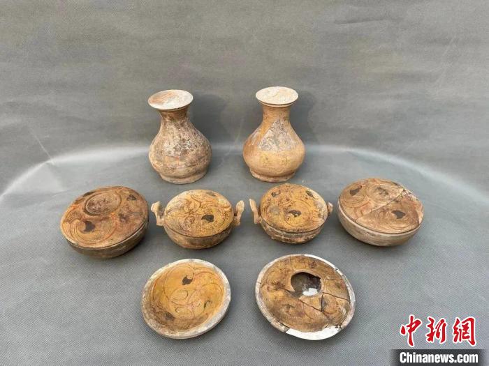 山西考古人員在襄汾縣發(fā)現(xiàn)百余座墓葬,圖為墓葬出土的陶器。(山西省考古研究院供圖)