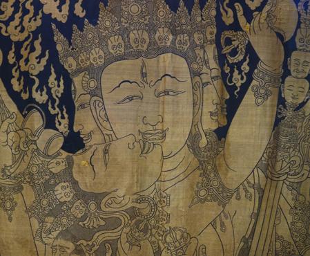 ▲永樂御制紅閻摩敵刺繡唐卡(局部)。(圖片來源:中新網(wǎng))