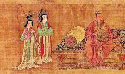 宋代畫作亦呈現(xiàn)女性服飾之濃郁色韻。畫作《女孝經(jīng)》中的女性穿著,有淡綠衫配淡紫裙、白衫配淡綠壓花裙、淡藍(lán)衫配淡黃裙等,披帛外搭相應(yīng)為淡藍(lán)、淡紫和淡黃,女性服色呈現(xiàn)出素淡搭配之主流?!冬幣_(tái)步月圖》為宋代畫家劉宗古創(chuàng)作,畫中女子裙子均為白色,衣著素淡簡(jiǎn)樸,氣質(zhì)高雅脫俗?!额率钟^花圖》中服色搭配更為柔和,女主人上穿淡紫窄袖長(zhǎng)襦,下穿白色長(zhǎng)裙,外搭淡黃披帛;侍女穿淡綠袍衫搭淡黃腰間寬巾,亦有穿淡藍(lán)袍衫搭白色腰圍?!肚迕魃虾訄D》為中國(guó)古代著名繪畫,由畫家張擇端創(chuàng)作,畫中少有女性,普通勞動(dòng)?jì)D女多穿青色裙或腰系青花圍巾,有身份的女子戴蓋頭、穿紫色褙子,展現(xiàn)出簡(jiǎn)約、素雅的宋代服飾風(fēng)格。