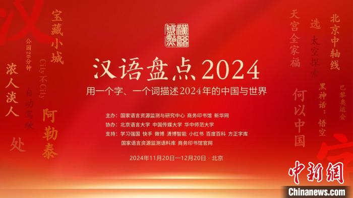 由國家語言資源監(jiān)測與研究中心、商務(wù)印書館等聯(lián)合主辦的“漢語盤點(diǎn)2024”20日在京啟動(dòng),“用一個(gè)字、一個(gè)詞描述當(dāng)年的中國與世界”,鼓勵(lì)全民用語言記錄生活,描述中國視野下的社會(huì)變遷和世界萬象。