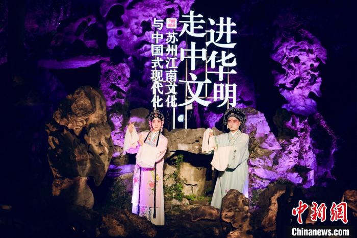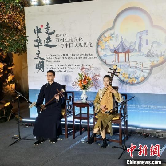 中新網(wǎng)蘇州11月29日電 (記者 鐘升)“月落烏啼霜滿天……”28日夜,蘇州古城華燈初上。以一曲蘇州評(píng)彈《楓橋夜泊》為引,“走進(jìn)中華文明——蘇州江南文化與中國式現(xiàn)代化”主題人文交流活動(dòng)在世界文化遺產(chǎn)獅子林拉開帷幕。