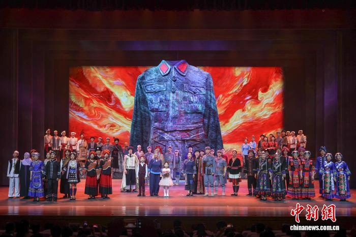 圖為9月23日,原創(chuàng)民族歌舞劇《五彩紅軍衣》首演現(xiàn)場。劉力鑫 攝