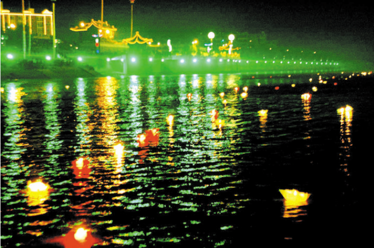 中元節(jié)這一天也有放河燈的習俗,最早源于印度佛教,傳入中國,是由寺院興起,起初有盂蘭盆會,在寺院里,誦經(jīng)供食,焚化紙船,謂之法船,可以“渡出冥孤獨之魂”,也是一種宗教儀式。后來這種形式,逐漸傳入民間社會,有了在河流中放河燈的習俗。試想天上人間,天上明月高空,繁星點點,地下一排排的紙船,在暗夜的黃河流水中猶如萬點螢光,向著遙遠的神秘方向漂流,讓人產(chǎn)生一種無限的想象,因此,在中元節(jié)放河燈,就是自己和心靈的一種對話,也是活著的人們對逝去的人們的一種懷念方式。當然河曲河燈節(jié),在祭祖、祭禹的同時,也加入了特定群體。那些在黃河水患中離去的人,那些在戰(zhàn)亂中逝去的人,那些在走西口謀生中失蹤的人,都成為被祭奠的亡靈,體現(xiàn)了其節(jié)日的地域性。