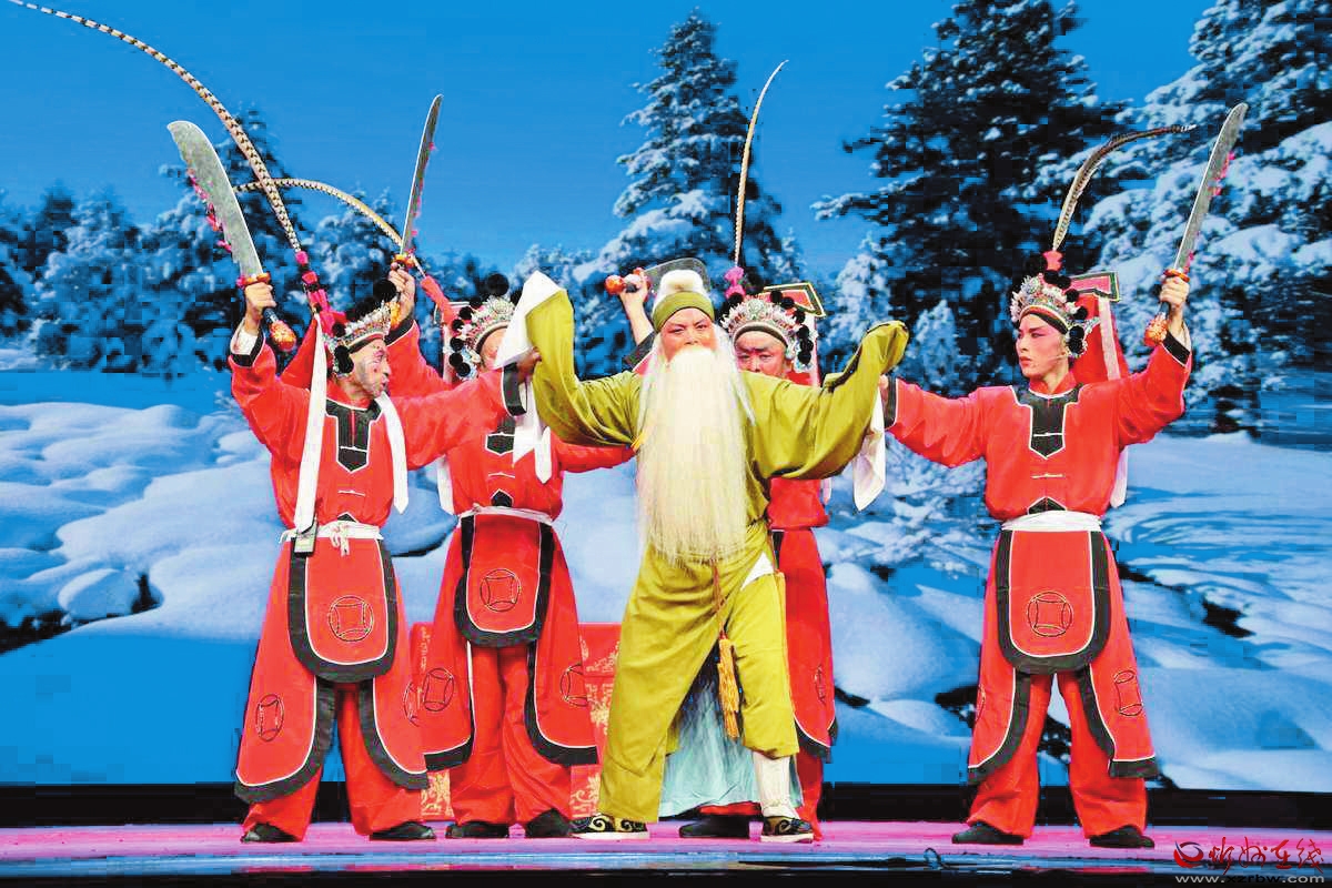 1943年,大眾劇社遷往康家灘,從工衛(wèi)旅劇社調(diào)來王洽勛等二人,負責(zé)教唱晉劇,排練了《撿柴》《蘆花》《回荊州》等傳統(tǒng)劇目。同年,晉綏二中師生共同組建了一個業(yè)余劇團,演出的節(jié)目反映了根據(jù)地人民革命斗爭的現(xiàn)實生活,教育意義非常深刻。如現(xiàn)代歌劇《十二把鐮刀》,話劇《棋局未定》《把眼光放遠點》,北路梆子《十二金牌》等?!妒鹋啤肥歉毙iL武進卿編寫的劇本,由校長范若愚飾演岳飛。