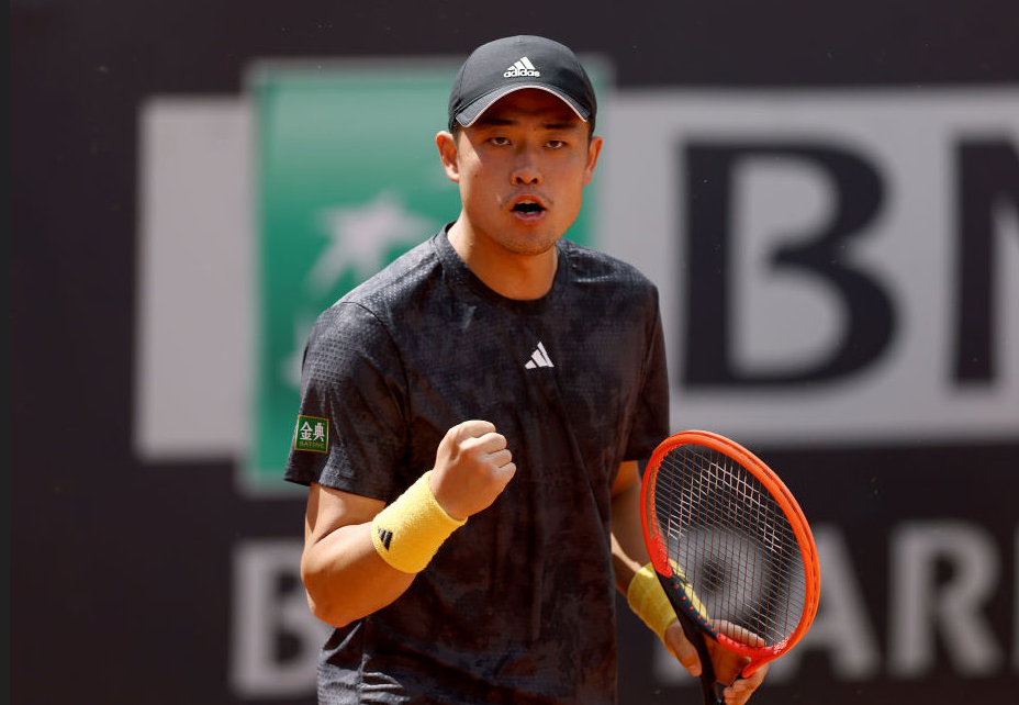 吳易昺在比賽中為自己加油。圖片來自ATP官方社交媒體賬號