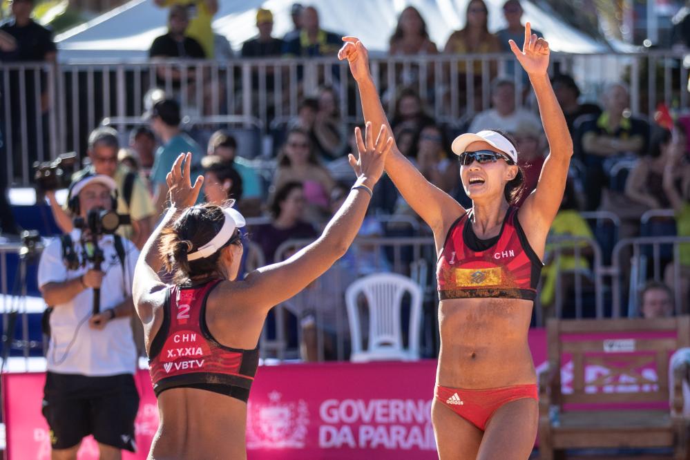 一如前幾日,若昂佩索阿海濱風力較大,給雙方的攻防都造成一定困難。努斯/克洛特開場后始終壓著中國隊打,但最后階段薛晨/夏欣怡抓住對方的失誤實現(xiàn)反超,以22:20拿下第一局;第二局美國選手依然來勢兇猛,開場取得較大優(yōu)勢,雖然中國隊一度將比分反超到19:20,但仍以20:22失利;決勝局,中國隊在與對手短暫僵持后率先拉開分差,最終以15:12獲得勝利。