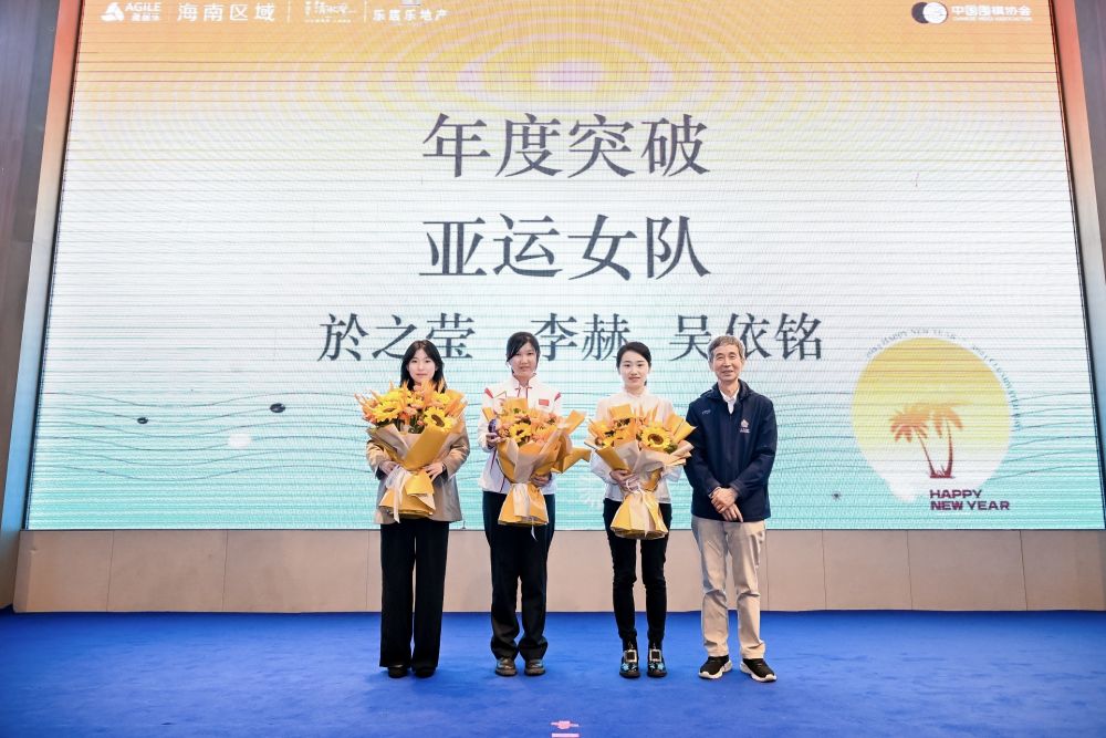 除了本賽季圍甲常規(guī)賽各獎項外,中國圍棋協(xié)會為在2023年各大賽事中有精彩發(fā)揮的棋手設(shè)置了特別獎。吳依銘、於之瑩、李赫組成的亞運中國女隊榮膺年度突破獎,她們在杭州亞運會獲得圍棋女子團(tuán)體冠軍,為中國隊奪得歷史上首枚亞運會圍棋項目金牌。辜梓豪憑借在衢州爛柯杯擊敗韓國名將申真谞奪冠,獲得年度振奮獎。一年內(nèi)包攬三星杯、LG杯兩大世界冠軍的丁浩獲得年度雙冠獎,成都女子圍棋隊獲得年度新軍獎。