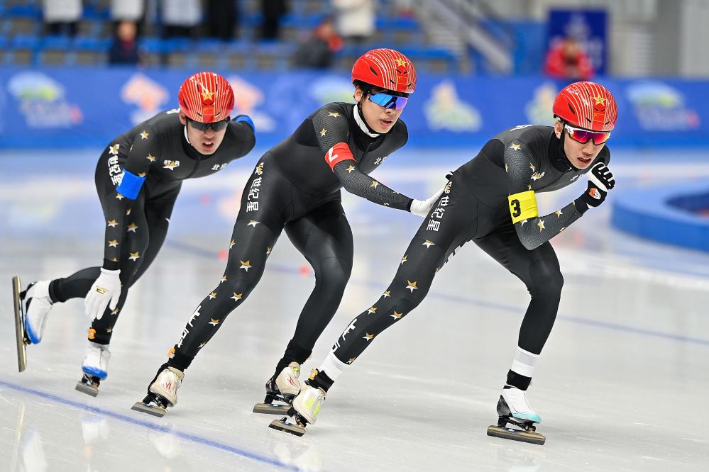 男子團體追逐決賽是速滑青年組的最后一場比賽,北京隊以3分52秒69的成績摘得金牌,并打破該項目全國青年紀(jì)錄。