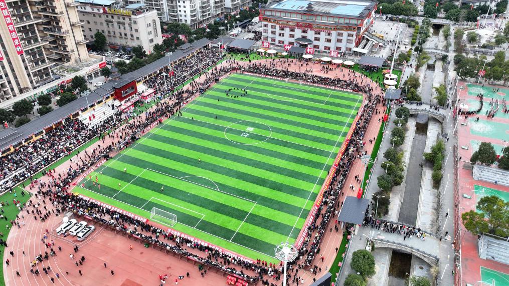 2月3日,觀眾在“村超”賽場等待活動開始(無人機照片)。新華社記者 劉續(xù) 攝