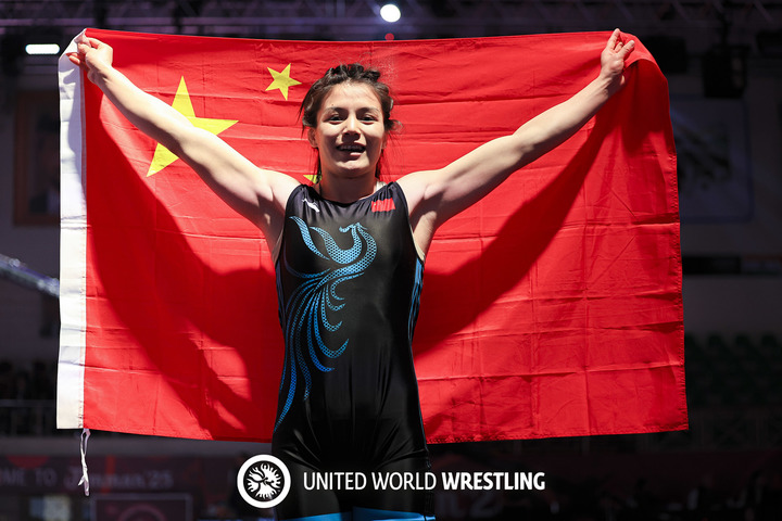 李澤露獲得2025亞錦賽女子自由式摔跤68公斤級(jí)冠軍。圖片來自世界摔聯(lián)官方網(wǎng)站