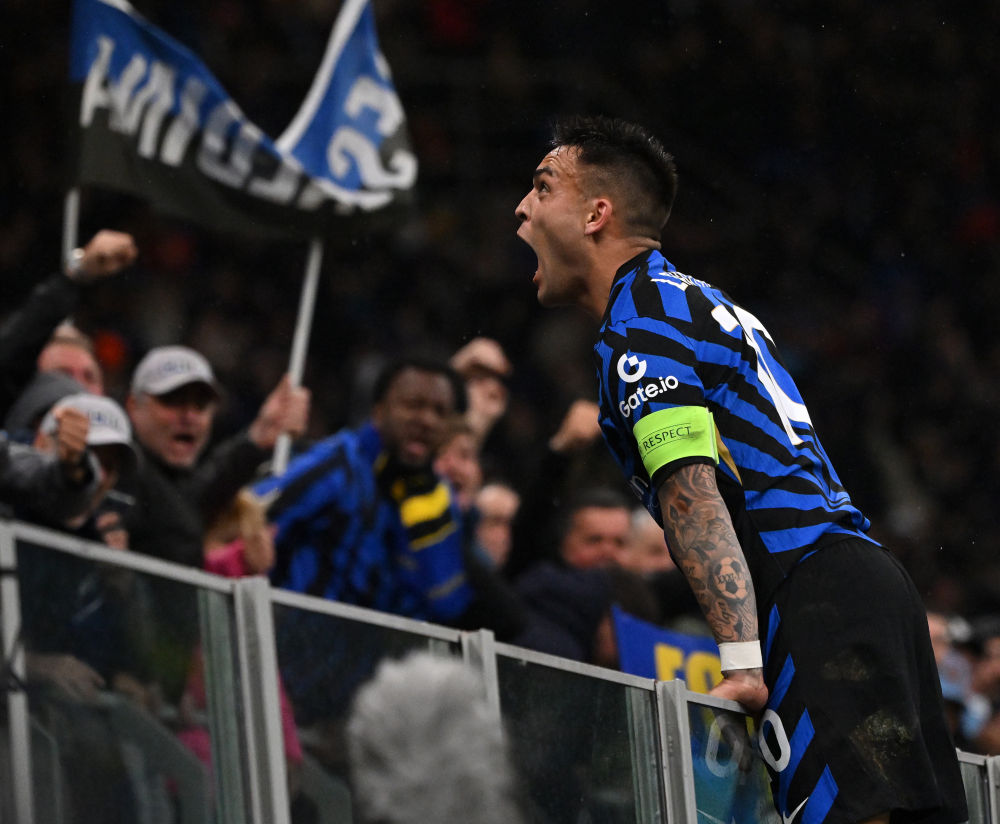 4月16日,國(guó)際米蘭隊(duì)球員勞塔羅·馬丁內(nèi)斯慶祝進(jìn)球。新華社發(fā)(阿爾貝托·林格利亞攝)