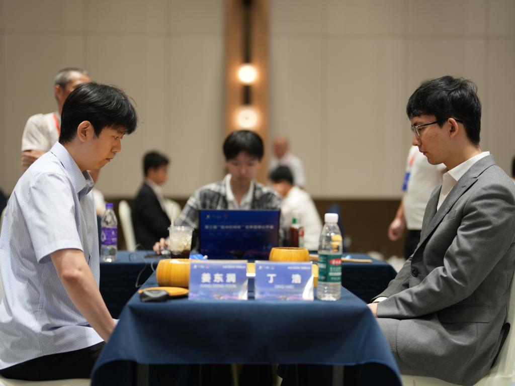 更大的逆轉(zhuǎn)則出現(xiàn)在丁浩與韓國隊姜東潤之間,丁浩官子階段弈出問題手,令對手勝率一度接近100%。但在全場其余各盤均已戰(zhàn)罷時,丁浩仍在頑強堅持。時間壓力之下,姜東潤錯判局面,導致雙方重回均勢,此后他又錯過制造“四劫循環(huán)”的良機,雙方鏖戰(zhàn)至361手,丁浩宣告勝利。