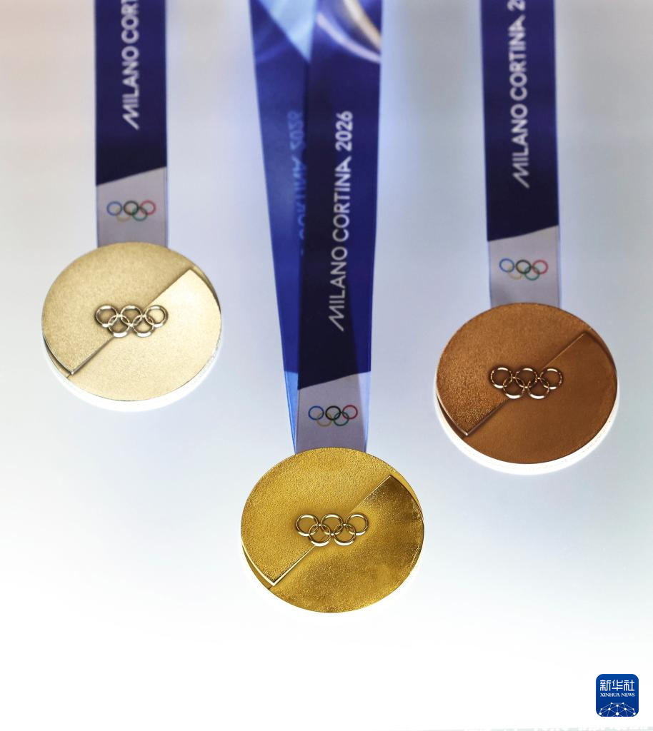 7月15日,2026年米蘭-科爾蒂納冬奧會和冬殘奧會獎牌在意大利威尼斯的威尼托大區(qū)政府總部正式發(fā)布。這是發(fā)布活動現(xiàn)場拍攝的2026年米蘭-科爾蒂納冬奧會獎牌。新華社記者 李京 攝