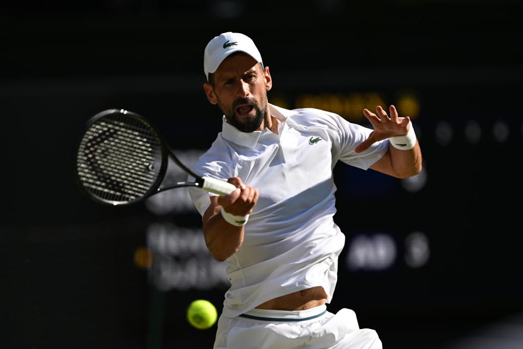 7月11日,焦科維奇在比賽中回球。當(dāng)日,在英國(guó)倫敦舉行的2025溫布爾登網(wǎng)球公開(kāi)賽男子單打半決賽中,意大利選手辛納3比0戰(zhàn)勝塞爾維亞選手焦科維奇,晉級(jí)決賽。新華社記者 趙丁喆 攝