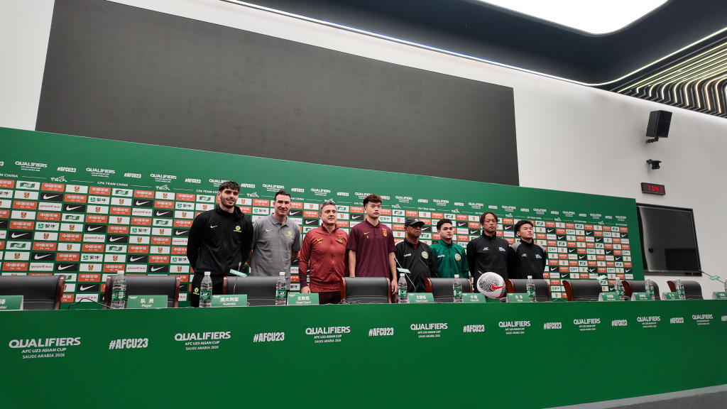 中國隊(duì)球員及教練團(tuán)隊(duì)在新聞發(fā)布會上
