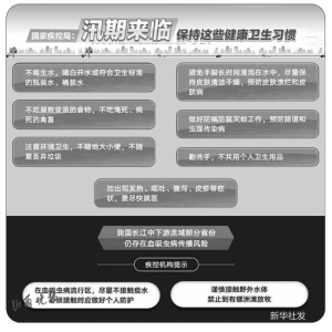 中國(guó)疾控中心衛(wèi)生應(yīng)急中心有關(guān)專家介紹,洪澇災(zāi)害易引起飲水水源污染,使災(zāi)區(qū)感染性腹瀉、痢疾等水源性和食源性疾病暴發(fā)風(fēng)險(xiǎn)增加。另外,洪水淹沒(méi)糞池、下水道等,導(dǎo)致動(dòng)物尸體腐敗,蚊蠅等媒介生物孳生,血吸蟲(chóng)、乙腦等蟲(chóng)媒及自然疫源性傳染病發(fā)生風(fēng)險(xiǎn)會(huì)相應(yīng)增加。