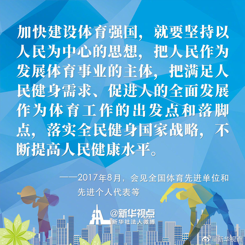 今年8月8日是我國第12個“全民健身日”。黨的十八大以來,以習近平同志為核心的黨中央高度重視關(guān)心體育工作,謀劃、推動體育事業(yè)改革發(fā)展,將全民健身上升為國家戰(zhàn)略,推動全民健身和全民健康深度融合。今天,一起來重溫習近平總書記關(guān)于推進全民健身、體育強國事業(yè)的金句?