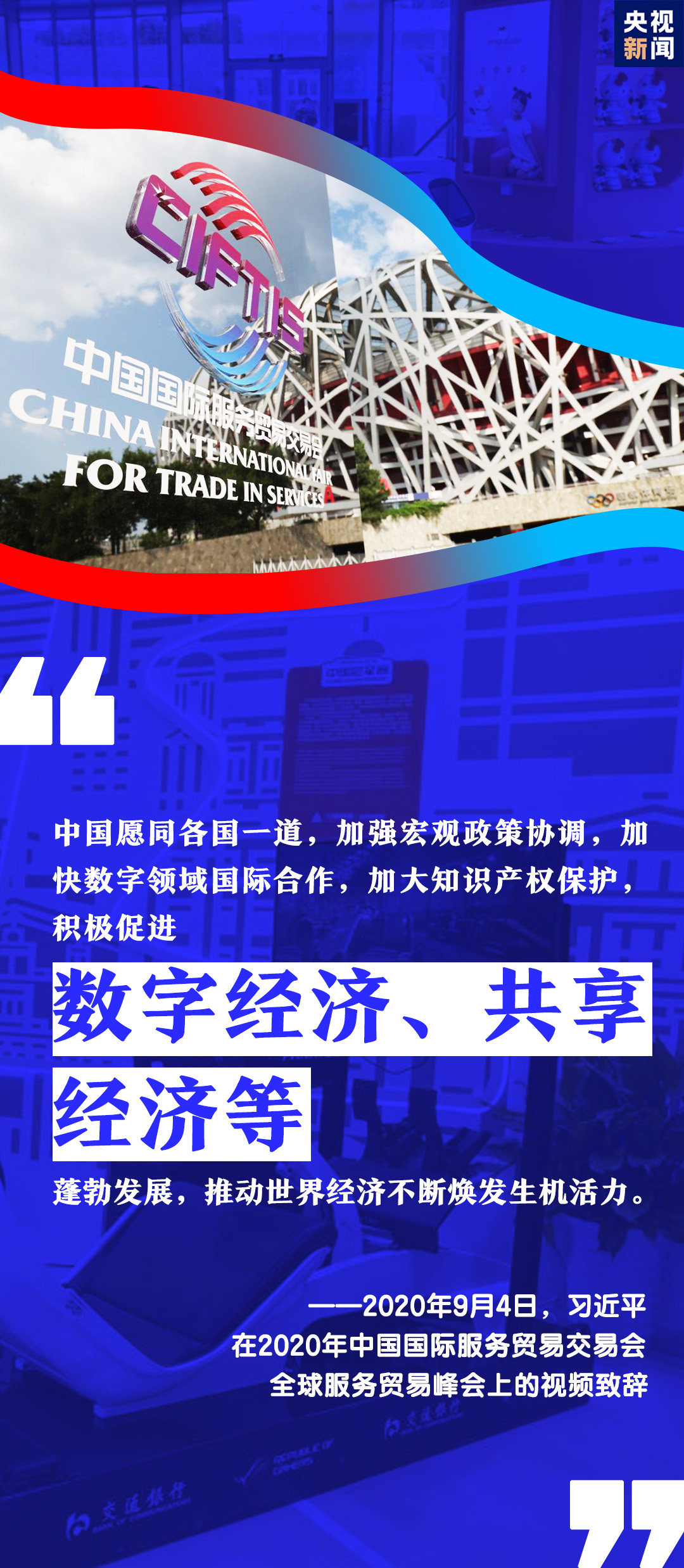9月4日,2020年中國國際服務(wù)貿(mào)易交易會全球服務(wù)貿(mào)易峰會在北京開幕。習(xí)近平主席通過視頻方式在峰會上致辭。