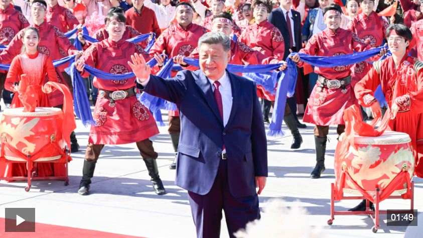 25日中午,習近平總書記在烏魯木齊出席新疆維吾爾自治區(qū)成立70周年慶?;顒雍?,乘專機返回北京。在烏魯木齊市區(qū)和機場,新疆各族群眾熱情歡送總書記。