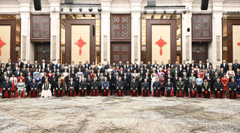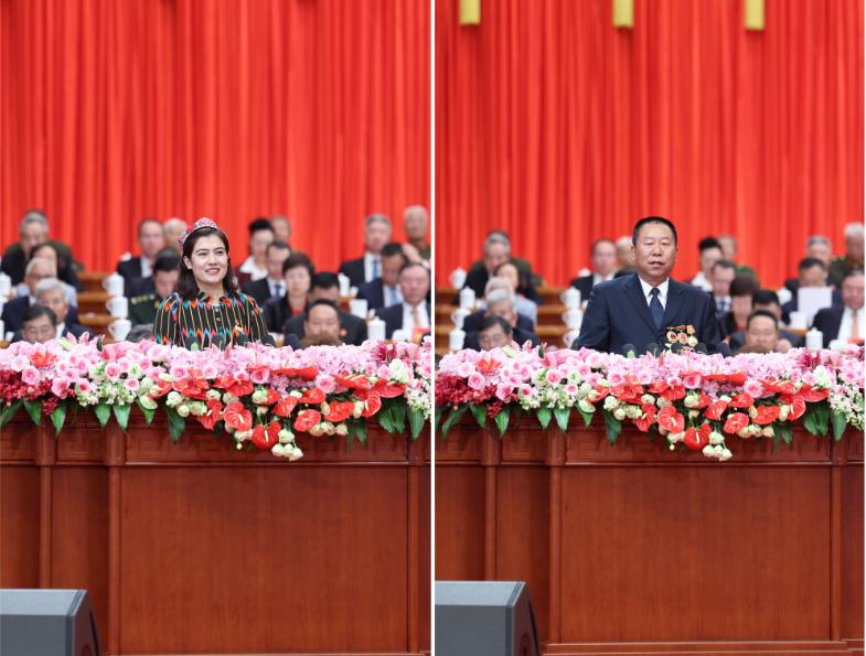 主席臺(tái)上,四位模范見證著這一榮光時(shí)刻。23日受到接見的魏德友、買買提江·吾買爾、巴依卡·凱力迪別克、布茹瑪汗·毛勒朵,也受邀參加慶祝大會(huì)。與莊嚴(yán)的國徽同框,他們深深為祖國的繁榮富強(qiáng)與自治區(qū)發(fā)展的光輝歷程而自豪。