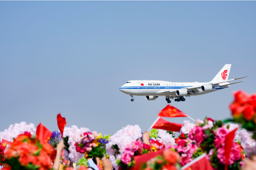 機(jī)場到住地沿途,花團(tuán)錦簇、彩旗飄揚(yáng)。人群如潮水涌到道路兩旁,揮動(dòng)的手臂與旗幟匯成海洋,一顆顆心激動(dòng)澎湃。習(xí)近平總書記向沿途群眾頻頻揮手、親切致意。