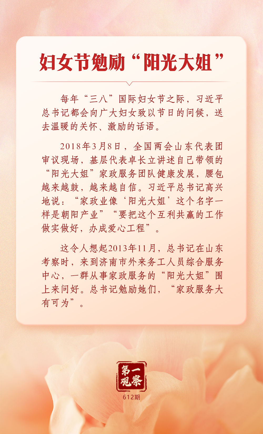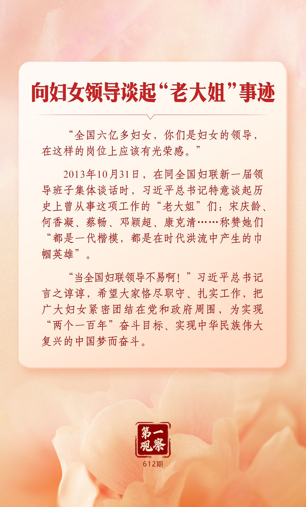 習(xí)近平總書(shū)記始終心系婦女事業(yè)發(fā)展。在全球婦女峰會(huì)即將召開(kāi)之際,讓我們一道深刻體悟這份一以貫之的牽掛與重視。
