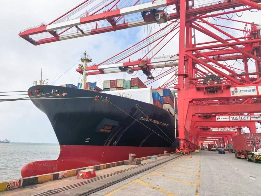 △2025年10月15日,上海洋山深水港,首批來(lái)自秘魯錢凱港的進(jìn)博會(huì)展品順利卸貨。