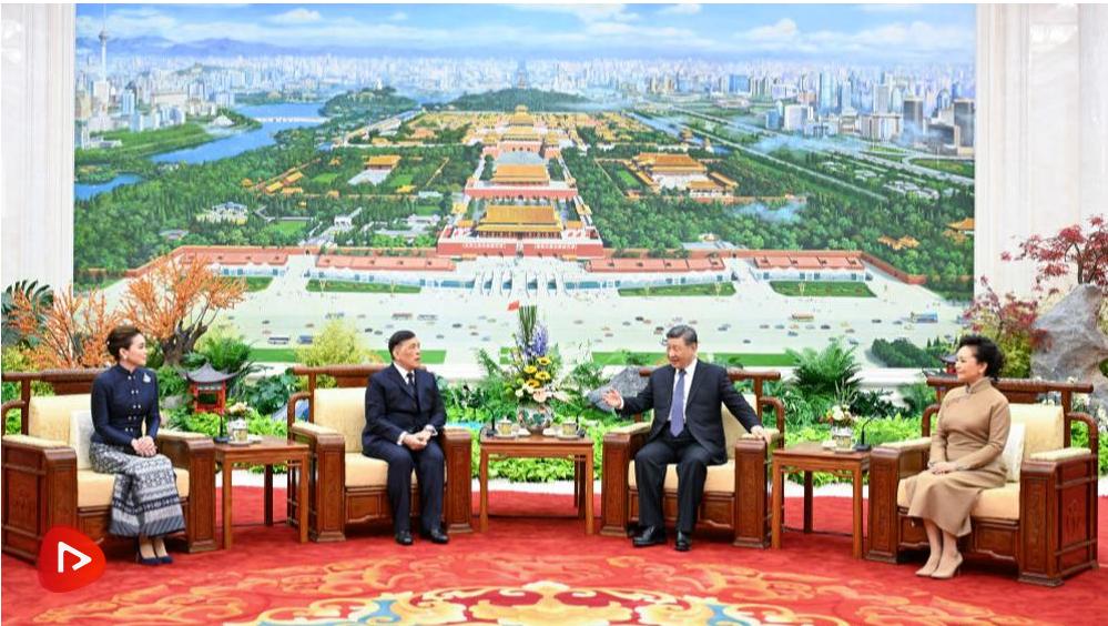 11月14日上午,國家主席習(xí)近平在北京人民大會堂會見來華進行國事訪問的泰國國王哇集拉隆功。