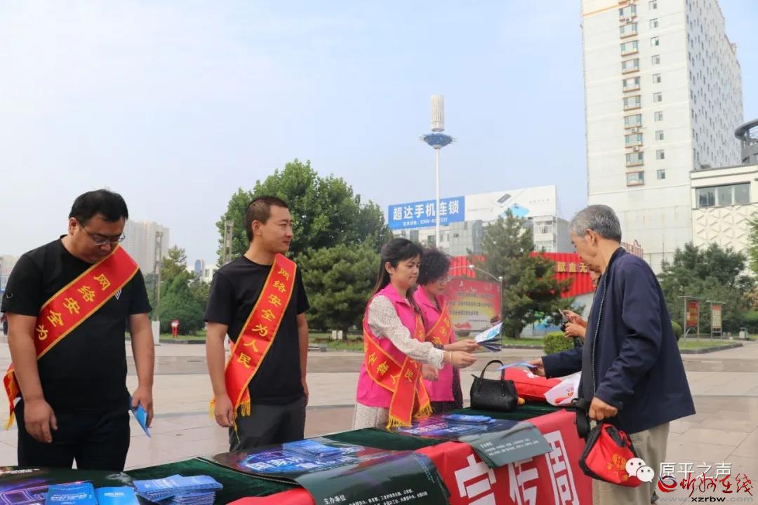 9月14日上午,原平市委宣傳部、市委網(wǎng)信辦、市公安局、市教科局、市工信局、團(tuán)市委、市婦聯(lián)、中國(guó)人民銀行等單位聯(lián)合在街心廣場(chǎng)開展集中宣傳,向市民發(fā)放宣傳資料。同時(shí),工作人員還走到街頭向過(guò)往群眾講解網(wǎng)絡(luò)安全基礎(chǔ)知識(shí)、個(gè)人信息保護(hù)等知識(shí),極大地調(diào)動(dòng)廣大群眾參與網(wǎng)絡(luò)安全防護(hù)活動(dòng)的熱情。