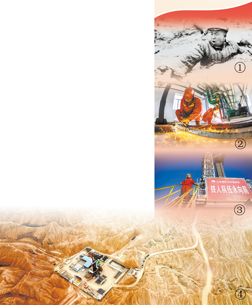 圖①:石油大會(huì)戰(zhàn)中,王進(jìn)喜忍著堿性泥漿帶來(lái)的灼痛,用血肉之軀奮力攪拌泥漿。資料圖片