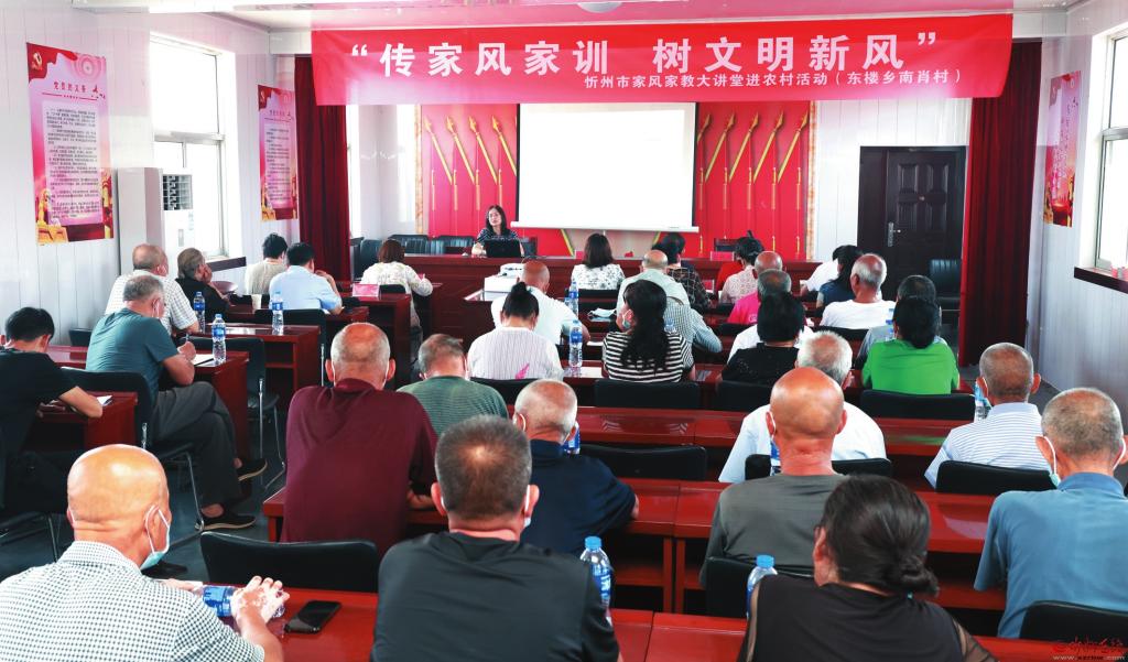 為大力弘揚(yáng)優(yōu)良家風(fēng)家訓(xùn),推動家庭美德建設(shè),讓社會主義核心價值觀在家庭里生根、在親情中升華,近日,忻府區(qū)南肖村以“傳家風(fēng)家訓(xùn)、樹文明新風(fēng)”為主題的大講堂開講。( 張存良 攝