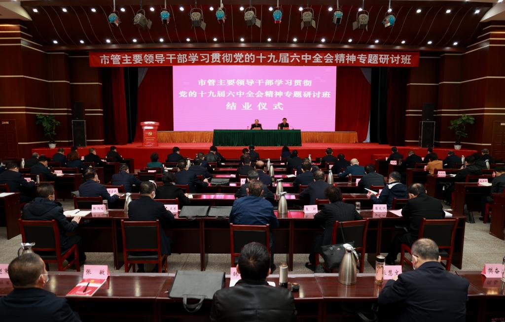 3月25日上午,為期四天的市管主要領(lǐng)導(dǎo)干部學(xué)習(xí)貫徹黨的十九屆六中全會(huì)精神專(zhuān)題研討班圓滿(mǎn)結(jié)業(yè)。市委副書(shū)記、政法委書(shū)記、市委黨校(忻州行政學(xué)院)校(院)長(zhǎng)郭奔勝出席結(jié)業(yè)儀式并講話(huà)。市委常委、組織部部長(zhǎng)張敏主持。