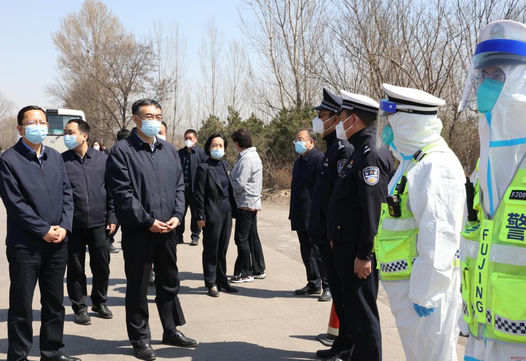 在高速公路代縣北、定襄西出口和原平市沿溝鄉(xiāng)班政鋪村交通卡口,李建國察看疫情防控工作人員操作規(guī)程,聽取涉疫地區(qū)人員入忻相關流程,了解臨時隔離設施配備和后勤保障情況。他要求基層卡口要及時關注最新疫情變化,第一時間更新涉疫區(qū)域名錄,嚴格驗碼測溫,切實盯緊盯牢守緊守牢入忻第一關口,把疫情隱患識別在第一落點,確保疫情防控萬無一失。多部門聯(lián)合防疫工作人員要切實做好自身防護,合理排班保證休息。部門間、縣與縣間要搞好協(xié)同配合,確保防控無遺漏無死角。